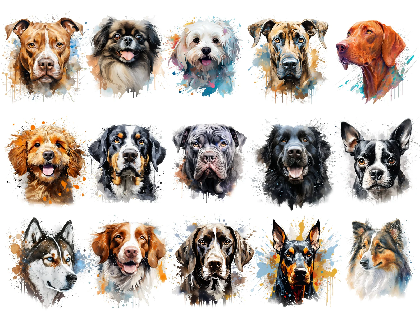 Unleash your creativity with this massive collection of 1,065 watercolor puppy and dog illustrations! From adorable puppy portraits to striking ink splash dog designs, this bundle has everything you need for your sublimation, printing, or digital art projects. 🐾✨