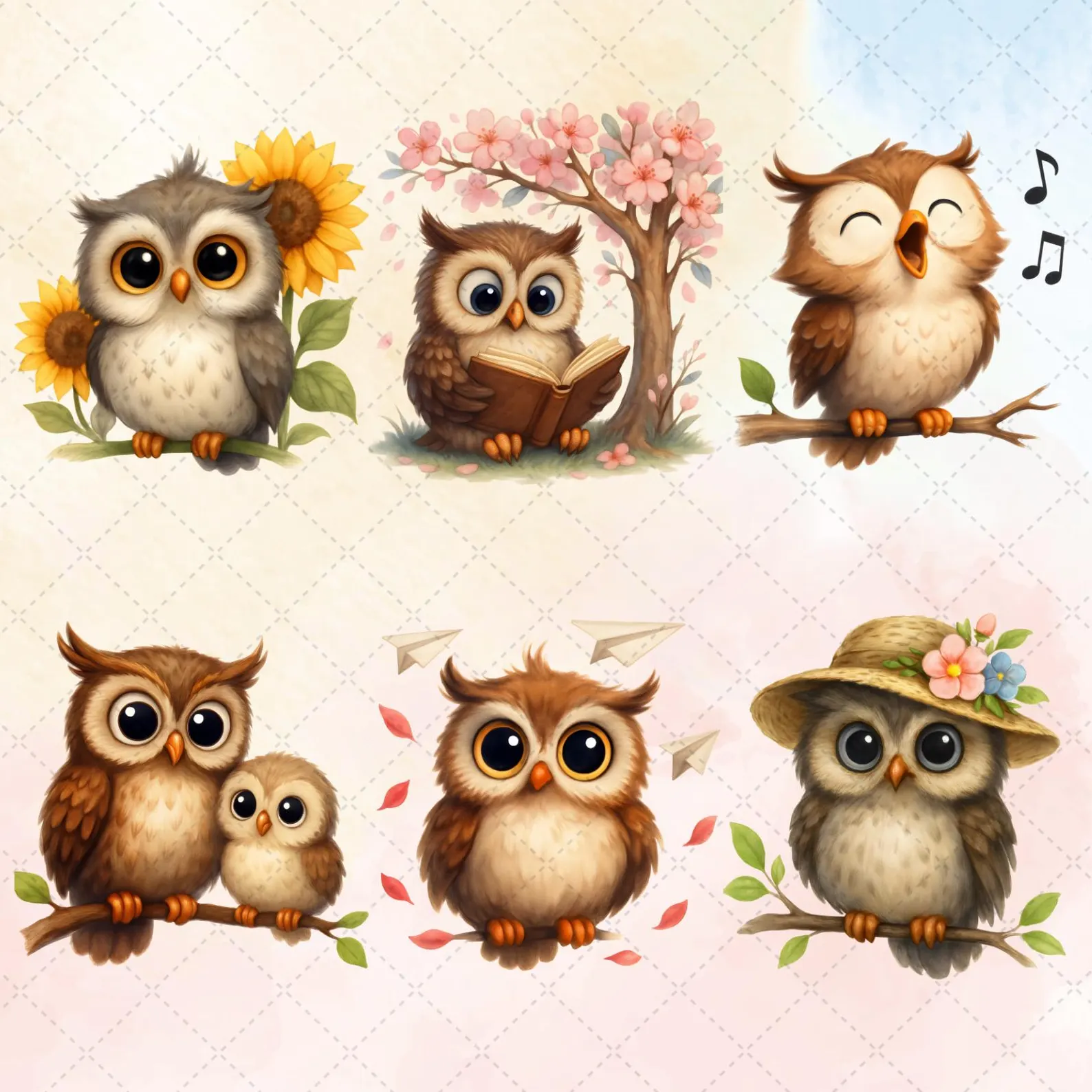 - 75 whimsical owl junk journal pages and watercolor portraits ๐ฆโจ
